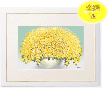 | 永遠に枯れることのない花の絵は、生け花よりも風水開運力が何倍も高いとされています。鮮やかな色調がお部屋をパッと明るく彩る効果とともに、画面いっぱいに咲き誇る花たちが、いつまでもあふれんばかりの幸運を招き入れてくれることでしょう。 |